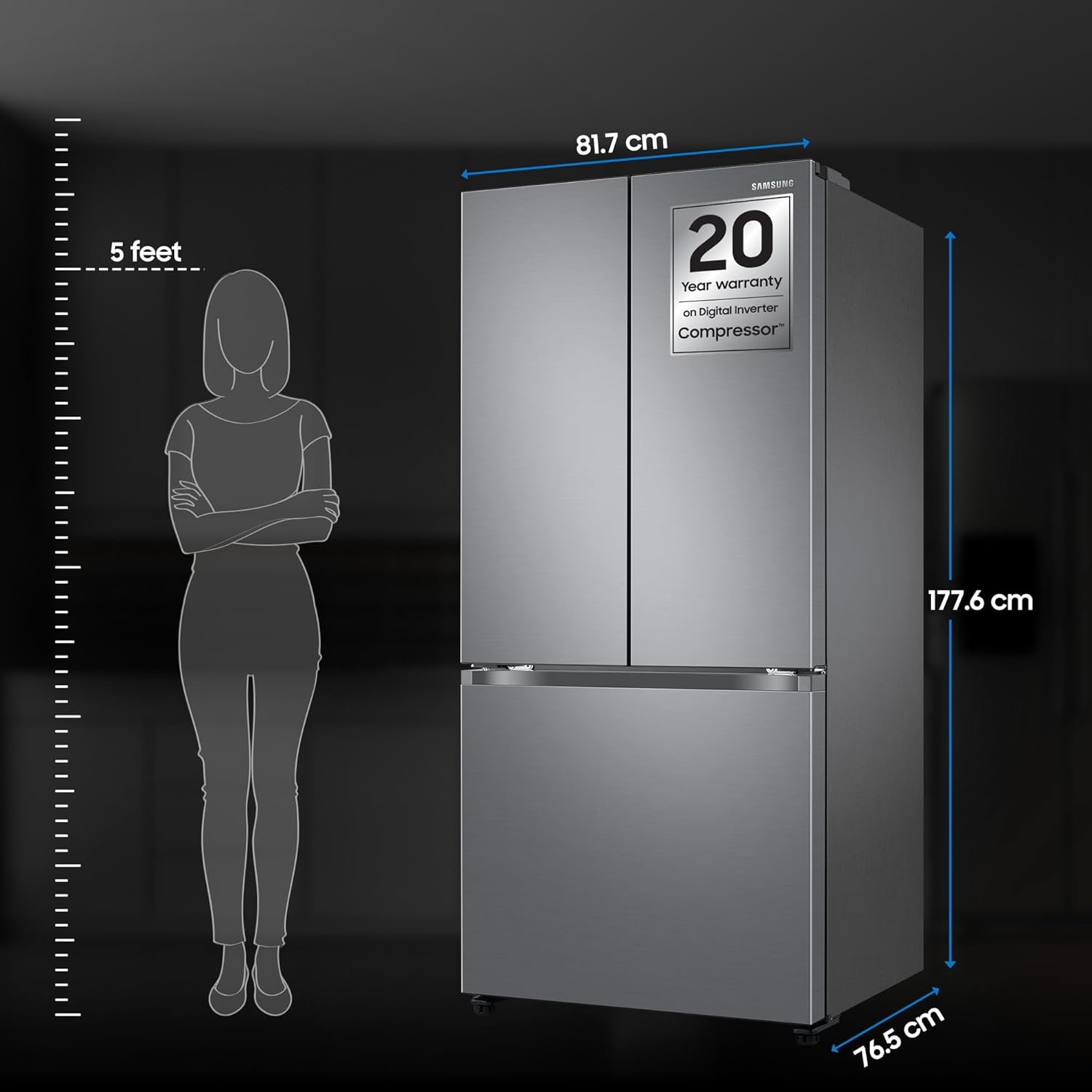 - Digital Inverter Compressor provides greater energy efficiency, less noise and long-lasting performance while consuming 50% less power, backed up by 20 year warranty