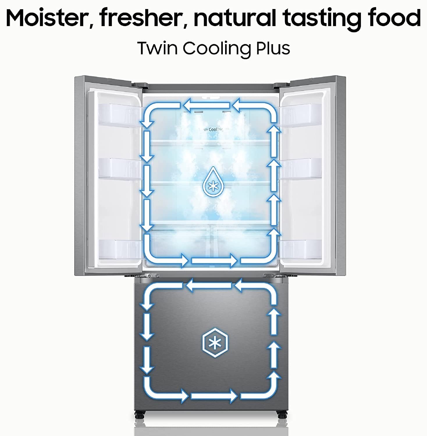 - Twin Cooling Plus : Ensures food stays fresh and moist longer. Prevents odor from mixing between compartments