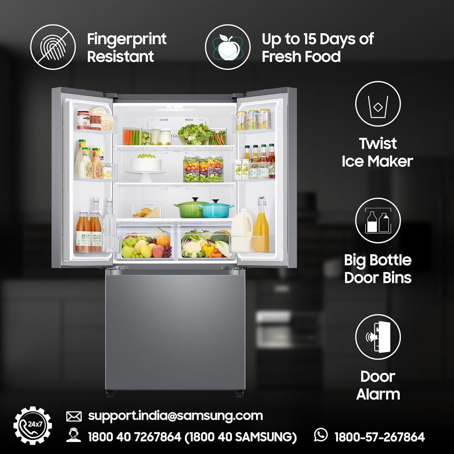 - Special Features : Convertible | Twin Cooling Plus| Power Freeze | Power Cool | Fingerprint Resistant | Built-in Look | Easy Access Control